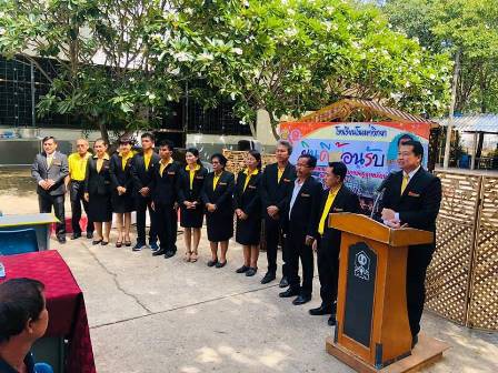 นายนรภัทร สิทธิจักร ผู้อำนวยการโรงเรียนโนนข่าวิทยา พร้อมด้วยคณะคุณครูเเละนักเรียน