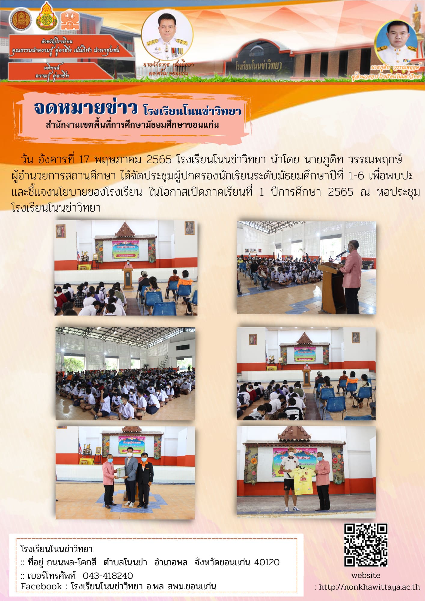17 พฤษภาคม 2565 โรงเรียนโนนข่าวิทยาจัดกิจกรรมประชุมผู้ปกครอง ประจำภาคเรียนที่1 ปีการศึกษา2565