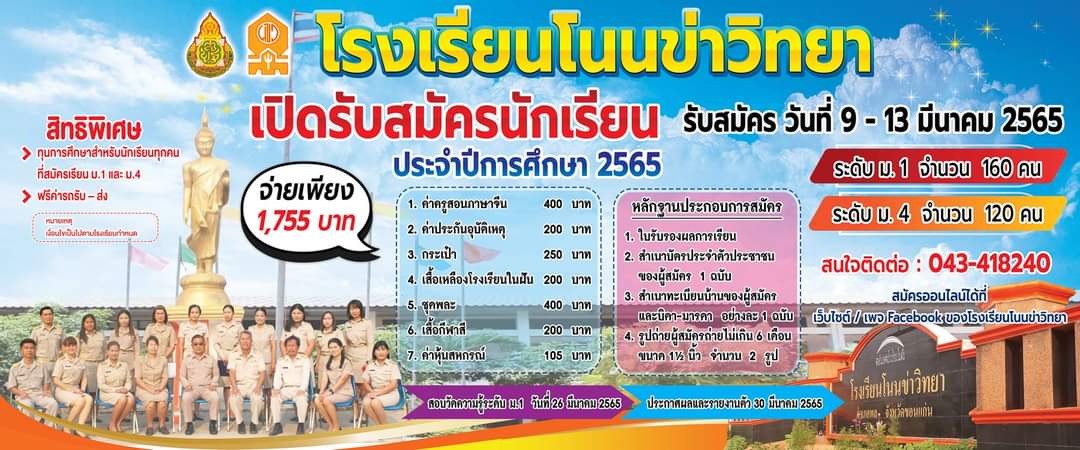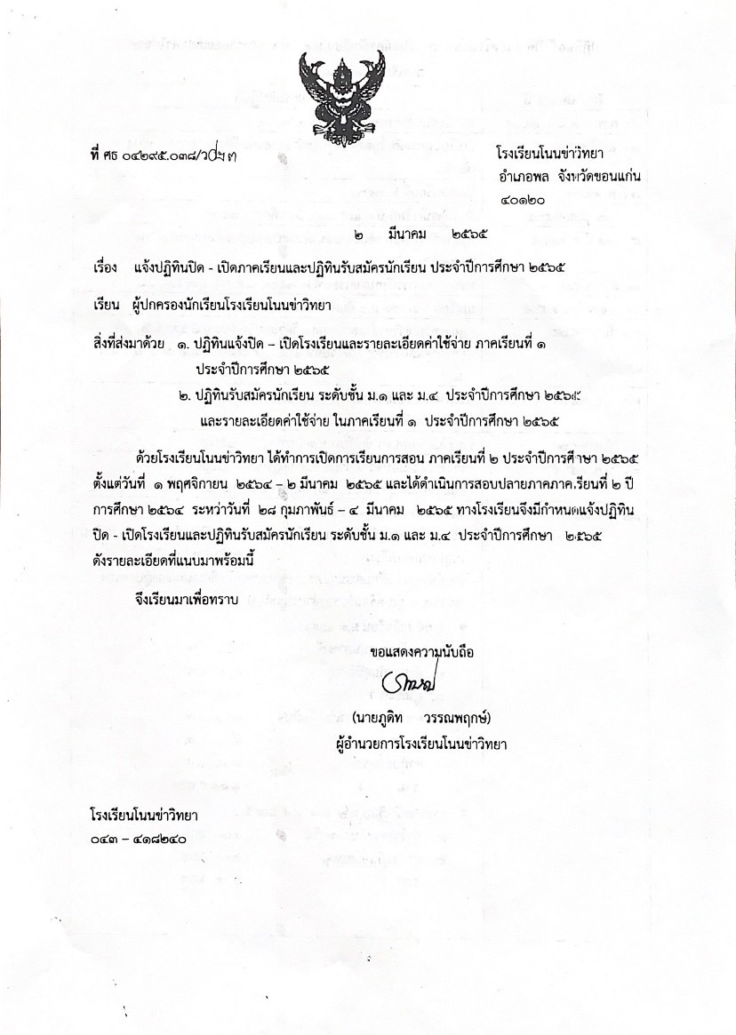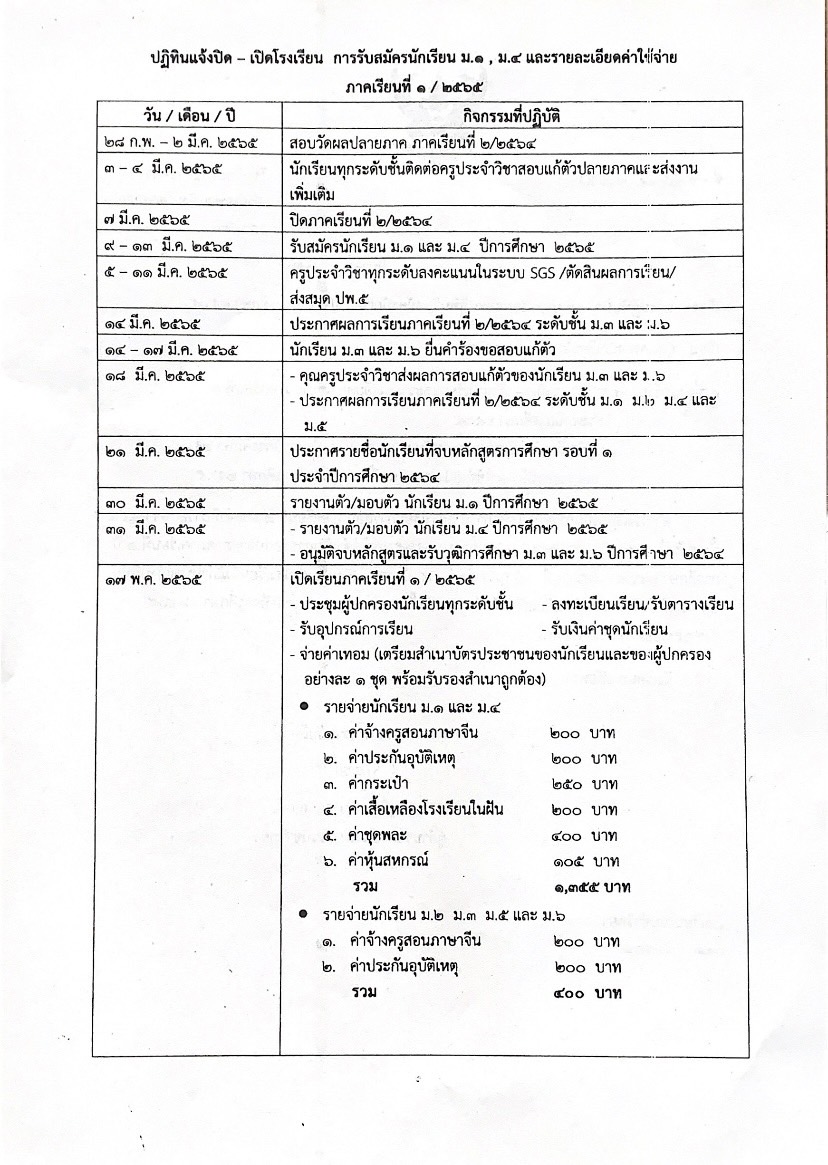 แจ้งปฏิทินปิด-เปิดภาคเรียน และรับสมัครนักเรียน ประจำปีการศึกษา 2565 รับสมัครวันที่ 9-13 มีนาคม 2565